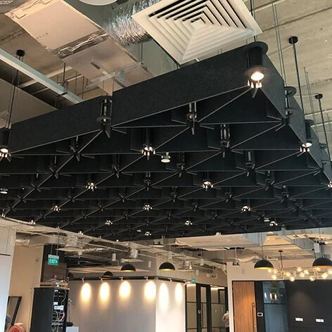 Ceiling panels are often custom-made to suit unique spaces. Our team works closely with clients to develop tailored solutions, ensuring both acoustic performance and seamless integration for even the most complex job sites