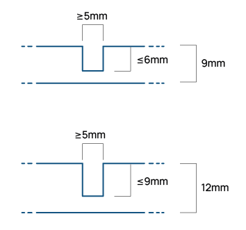 A precision-cut groove with angled sides, allowing for both straight and curved patterns. Offers sculptural depth and design flexibility for 9mm & 12mm panels.